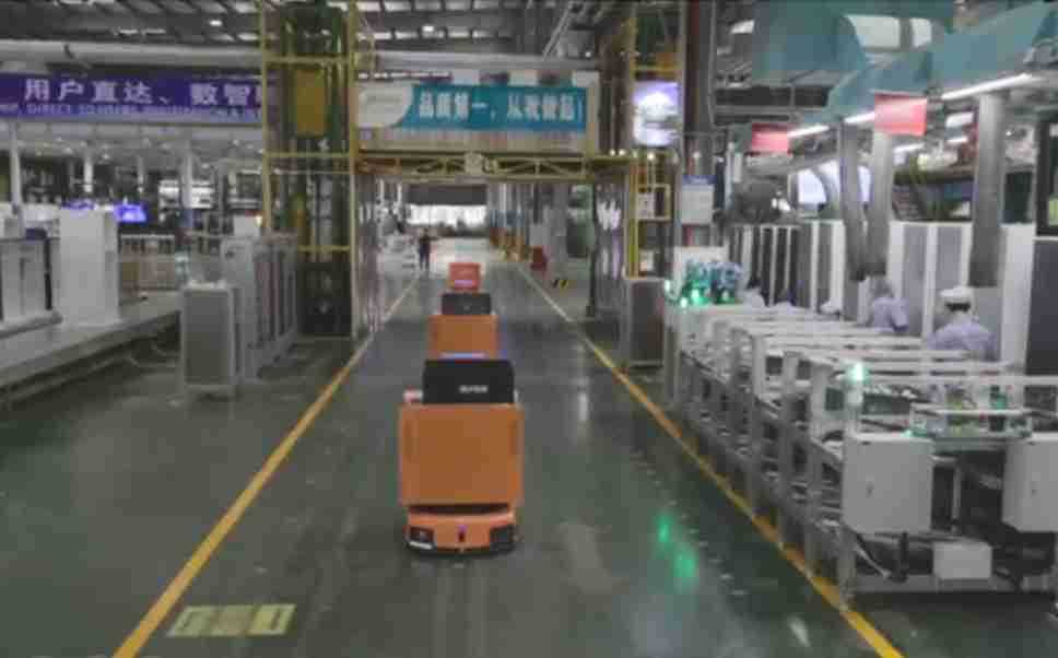 为车载冰箱物流配送打造的智能解决方案,,,包含产中物流通过潜伏举升AMR搬运至线边,,,产后成品物流智能仓储,,流程包含产中物流智能齐套入库,,,线边安灯叫料AMR智能配送至线边,,,,成品入库、、、出库,,,通过无人堆高车机器人,,,,智能仓储管理替代人工作业管理,,,实现更高存储、、、、更高效率、、、、更具柔性化的解决方案。。。。
